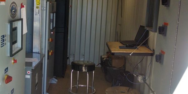 Left:  Control container with two Dyna Power 100kw inverter's and 100kw of super capacitors built for Bright Energy Storage Technologies.